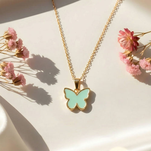 Elegant Butterfly Gold Pendant Necklace with Soft Color Enamel